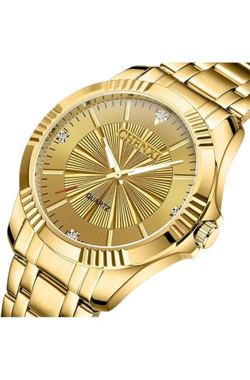 Men's Gold-Tone Stainless Steel Watch with Crystal Hour Markers