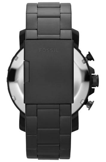 Band Specifications 24mm width stainless steel bracelet in black finish. Fold-over clasp closure with secure locking mechanism. Removable links allow size adjustment. Compatible with other 24mm Fossil watch bands.