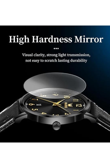 Men's Analog Quartz Watch with Leather Strap and Date Display
